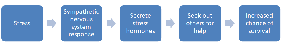 Interestingly, oxytocin is both a stress response and provides a calming effect. It encourages us to connect socially with others, which can result in positive emotions such as gratitude, happiness, and pleasure.