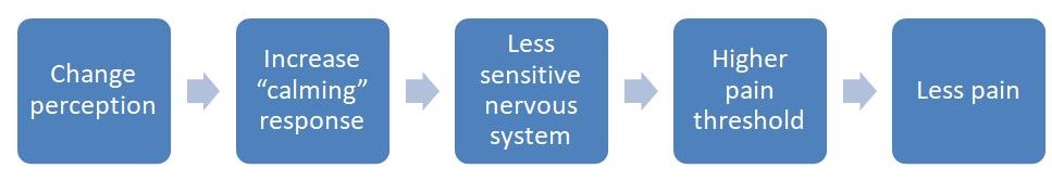 Learning about strategies to manage stress is essential to helping chronic pain. Changing how we think about stress is a good start. When we are stressed, the hormone oxytocin is released. Although it is a stress hormone, it also triggers us to seek out social connection which produces a calming effect, and sometimes even brings us feelings of joy or gratitude! Take a moment to think about all the times we felt very stressed, and phoned a friend or asked for advice from others, just to talk things through. If we perceive our stress response as helpful instead of harmful, it would decrease our sympathetic nervous system response.